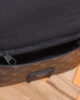 V stitching and embossed signature on the leather handle